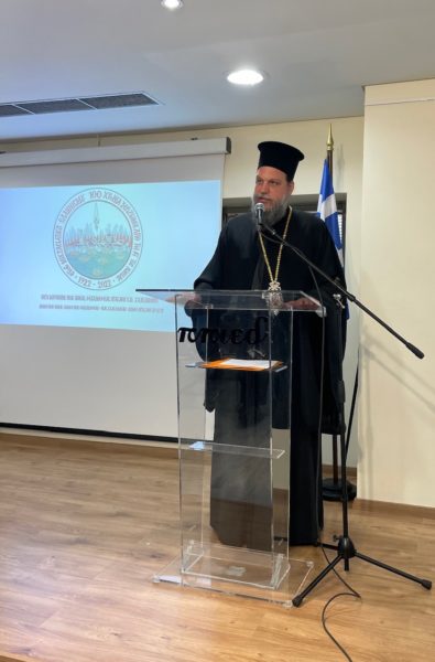 Την Ημερίδα έκλεισε ο Σεβασμιώτατος κ. Γαβριήλ, ο οποίος, αφού ευχαρίστησε θερμάτον Πανοσιολογιώτατο Πρωτοσύγκελλο της Ιεράς Αρχιεπισκοπής π. Βαρνάβα για την τιμητική παρουσία του, τον Δήμαρχο κ. Ιωάννη Βούρο και τους Μικρασιατικούς συλλόγους της περιοχής για την άρτια συνεργασία στον προγραμματισμό των εκδηλώσεων μνήμης καθώς και τον π. Ηλία Δροσινόγια την συγκινητική και εξαιρετικά εμπεριστατωμένη εισήγησή του, αναφέρθηκε στην οικουμενική εκκλησιαστική ακτινοβολία και στην διεθνή ακαδημαϊκή αναγνώριση του μακαριστού Αρχιεπισκόπου κυρού Χρυσοστόμου Παπαδοπούλου.
