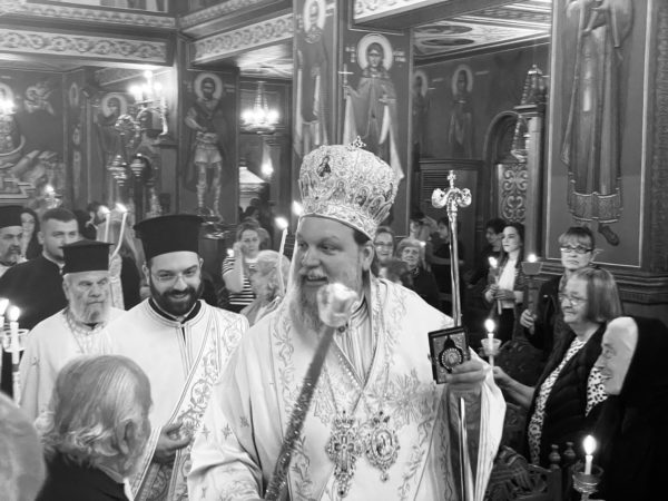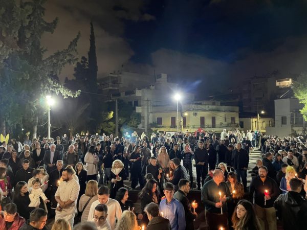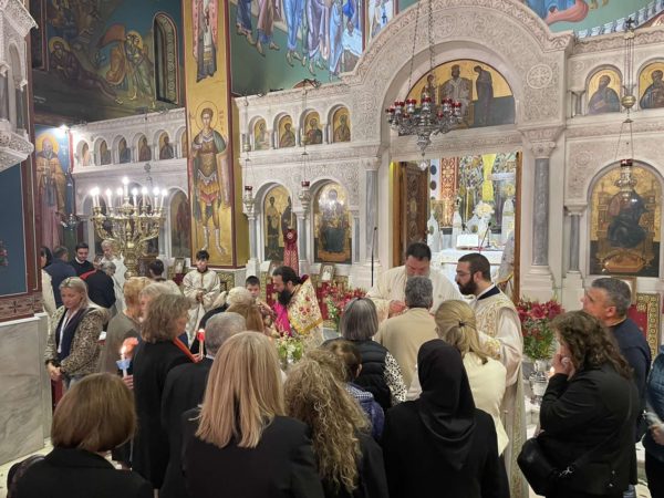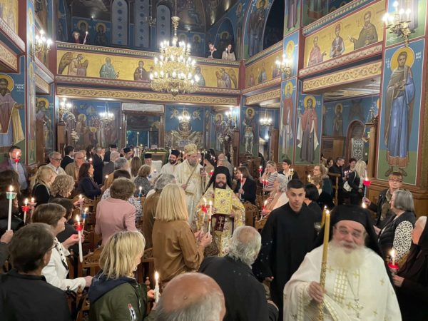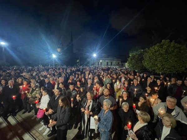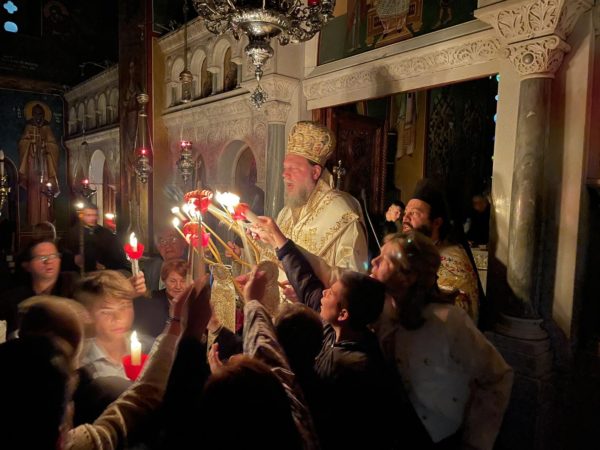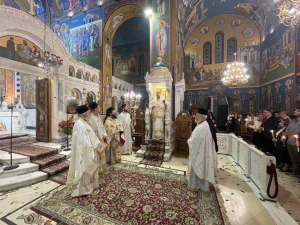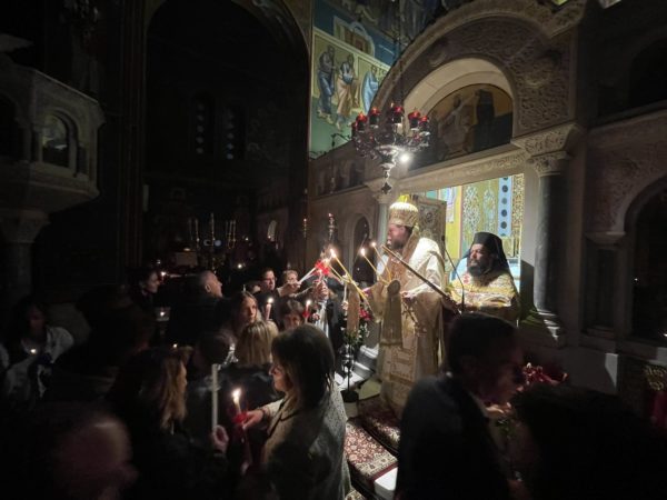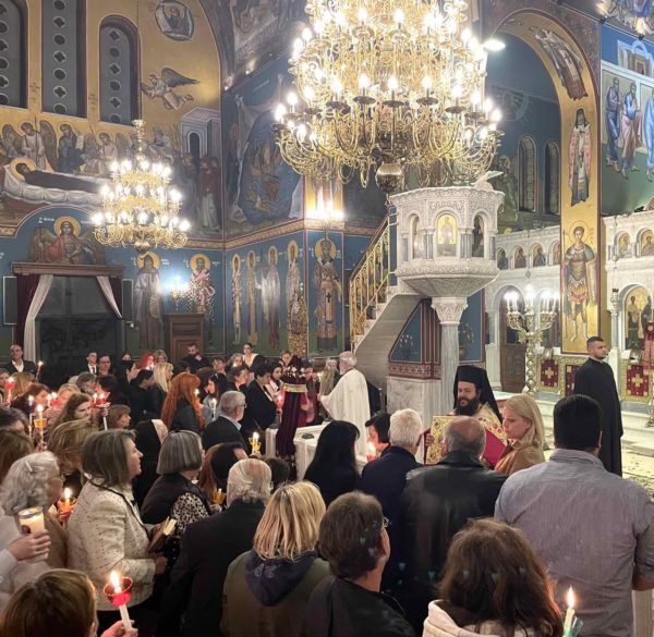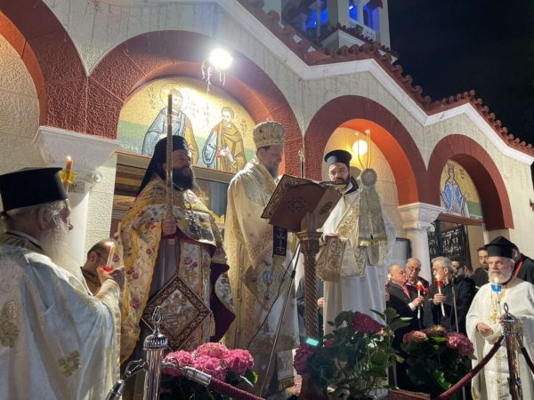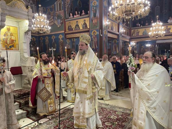 Πλήθος πιστών προσήλθαν με κατάνυξη στον Μητροπολιτικό Ναό, και κρατώντας αναμμένες λαμπάδες από το ανέσπερο φως, συγκεντρώθηκαν στον προαύλιο χώρο του Ναού για να ακούσουν τον νικητήριο παιάνα της Εκκλησίας «Χριστός Ανέστη», που σηματοδοτεί τον θρίαμβο της δόξης του Θεού και της νίκη της ζωής κατά του θανάτου.