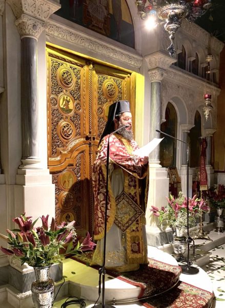 Κατά την ώρα του Κοινωνικού, ο Πανοσιολογιώτατος Πρωτοσύγκελλος της Ιεράς Μητροπόλεως Αρχιμ. Επιφάνιος Αρβανίτης ανέγνωσε το Πασχάλιο Μήνυμα του Σεβασμιωτάτου, ενώ προ της απολύσεως της Θείας Λειτουργίας, ο Σεβασμιώτατος Μητροπολίτης κ. Γαβριήλ απηύθυνε θερμές αναστάσιμες ευχές προς τους πιστούς, μεταφέροντας το μήνυμα της ζωής και της άφατης χαράς που πηγάζει από τον Πανάγιο και Ζωοδόχο Τάφο του Αναστάντος Χριστού.