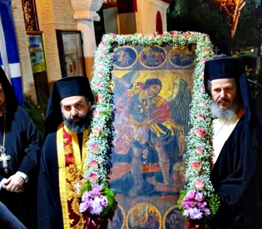Νωρίτερα, στο πλαίσιο εορτασμού του Μητροπολιτικού Ναού πραγματοποιήθηκε υποδοχή της Ιεράς θαυματουργού Εικόνος του Ταξιάρχη Μιχαήλ εκ Νεαπόλεως της Καππαδοκίας, την οποία οι αείμνηστοι Μικρασιάτες προπάτορές μας λιτάνευαν σε περιόδους επιδημιών και ανομβρίας.