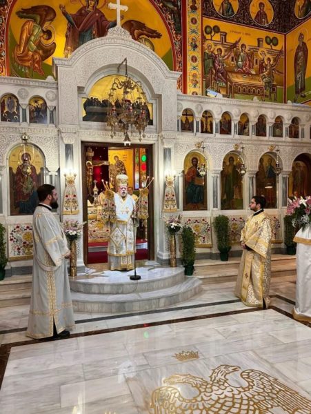 Ανήμερα της εορτής το πρωί, Δευτέρα 16 Σεπτεμβρίου, ο Σεβασμιώτατος Μητροπολίτης Ανέων κ. Μακάριος χοροστάτησε στην Ακολουθία του Όρθρου και στη συνέχεια τέλεσε την Αρχιερατική Θεία Λειτουργία, πλαισιωμένος από κληρικούς της Ιεράς Μητροπόλεως.