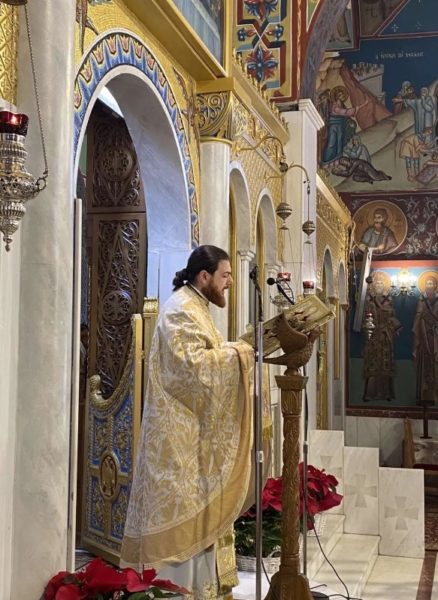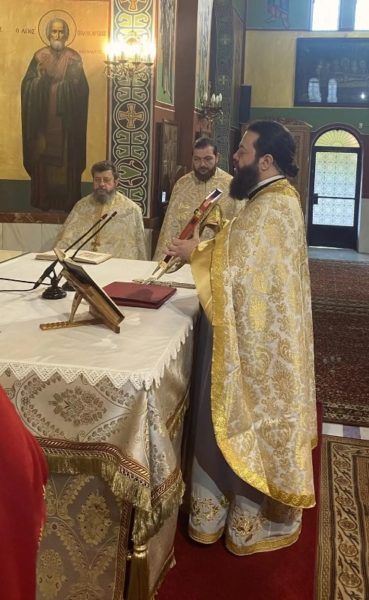 Την Θεία Λειτουργία τέλεσε ο Πανοσιολ. Πρωτοσύγκελλος της Ιεράς Μητροπόλεως Αρχιμανδρίτης Επιφάνιος Αρβανίτης, πλαισιωμένος από τους εφημερίους τους Ιερού Ναού και κληρικούς της Ιεράς Μητρόπολης.
