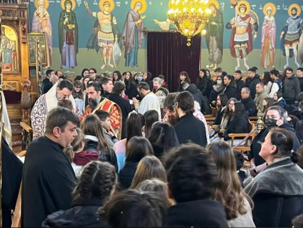 Η Θεία Λειτουργία τελέσθηκε στον σολέα του Ιερού Ναού και το παρών έδωσε μεγάλος αριθμός μαθητών και εκπαιδευτικών των σχολείων της περιοχής καθώς και πλήθος πιστών.