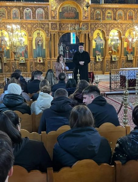 Μετά το πέρας της Θείας Λειτουργίας, ο Σεβασμιώτατος μοίρασε ευλογίες στα παιδιά και στη συνέχεια συζήτησε μαζί τους για θέματα που τους απασχολούν.