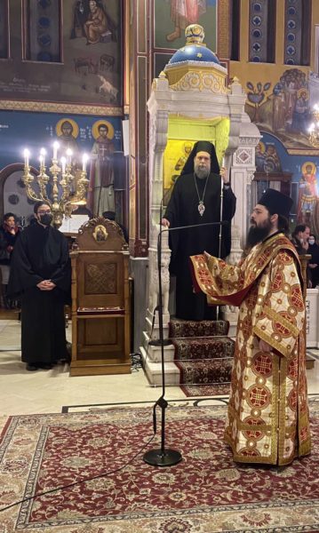 Κατά την διάρκεια του Εσπερινού, ο προσκεκλημένος του Σεβασμιωτάτου, Πανοσιολ. Καθηγούμενος της Ιεράς Συνοδικής Μονής Παναγίας Χρυσοπηγής Αρχιμ. Εφραίμ Παναούσης, ανέπτυξε εορταστική ομιλία με θέμα: «Οι Τρείς Ιεράρχες και η παράδοση της Ανατολής».