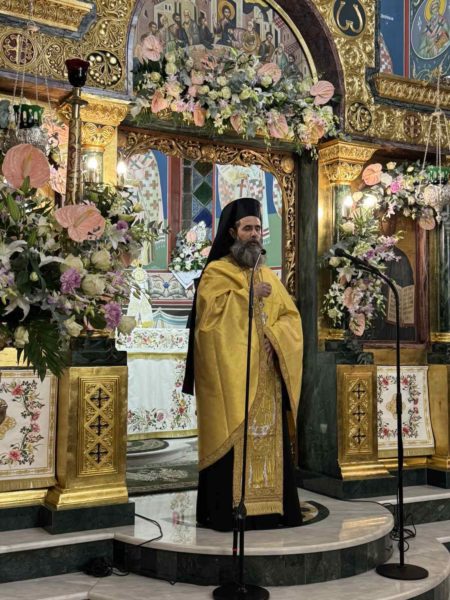 Τον θείο λόγο κήρυξε ο Σεβασμιώτατος Μητροπολίτης κ. Γαβριήλ, ο οποίος αναφέρθηκε στο μαρτυρικό βίο του Αγίου Ευσταθίου και στη σχέση του με την οικογένειά του, η οποία θα πρέπει να αποτελεί πρότυπο για τη σημερινή οικογένεια, αφού θεμελιώθηκε στην αγάπη, στην υπομονή και στην πίστη.