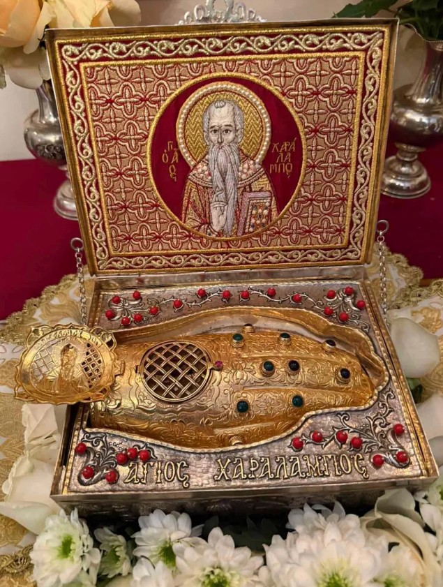Προ της Απολύσεως, ο Σεβασμιώτατος αναφέρθηκε στον πολύαθλο μαρτυρικό βίο του Μικρασιάτη Αγίου Χαραλάμπους, καθώς και στα στοιχεία εκείνα που συνέθεταν την πνευματική προσωπικότητα του Αγίου.