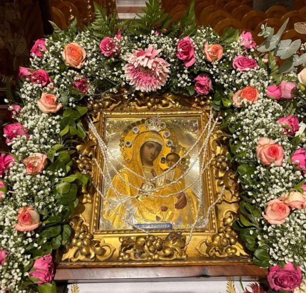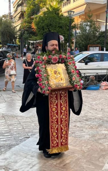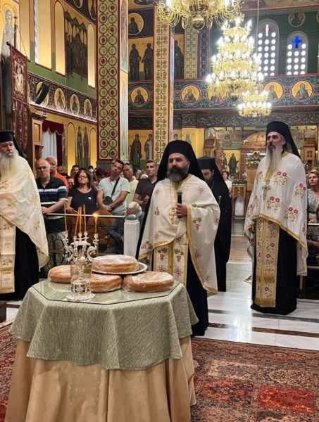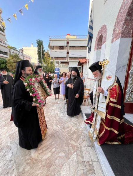 Νωρίτερα, στο πλαίσιο του εορτασμού, ο Σεβασμιώτατος Μητροπολίτης κ. Μακάριος, παρουσία του ιερού κλήρου, υποδέχθηκε την Ιερά Εικόνα της Παναγία της «Πορταϊτίσσης» εκ Μικράς Ασίας, η οποία στη συνέχεια τέθηκε σε προσκύνηση προς ευλογία και αγιασμό του πιστού λαού.