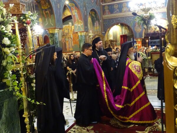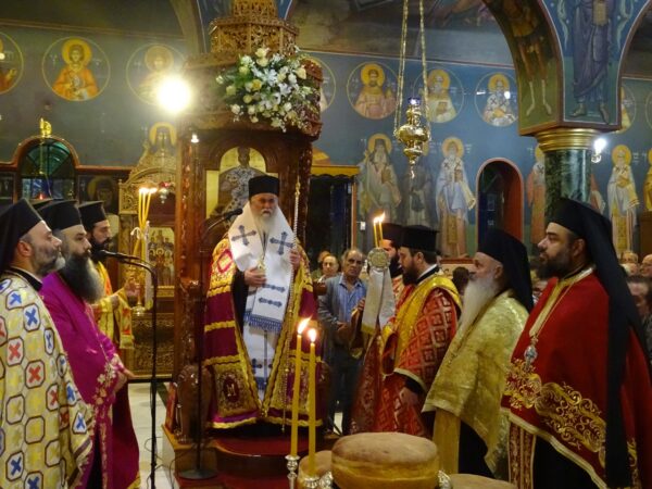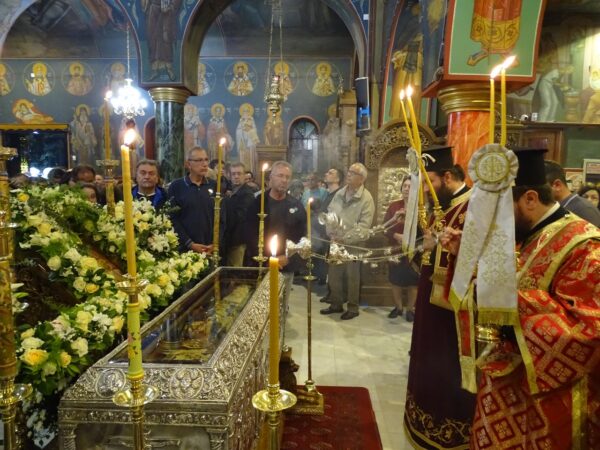 Το Σάββατο 2 Νοεμβρίου 2019 τελέσθηκε ο Μέγας Πολυαρχιερατικός Πανηγυρικός Εσπερινός, χοροστατούντος του Σεβασμιωτάτου Μητροπολίτου Καλαβρύτων και Αιγιαλείας κ. Ιερωνύμου και συγχοροστατούντων των Σεβασμιωτάτων Μητροπολιτών Φθιώτιδος κ. Συμεών και του οικείου Ποιμενάρχου Νέας Ιωνίας και Φιλαδελφείας κ. Γαβριήλ, τη συμμετοχή πολλών κληρικών και τη παρουσία τοπικών αρχόντων, προέδρων και εκπροσώπων Μικρασιατικών συλλόγων και τοπικών πολιτιστικών σωματείων και πλήθους πιστών.