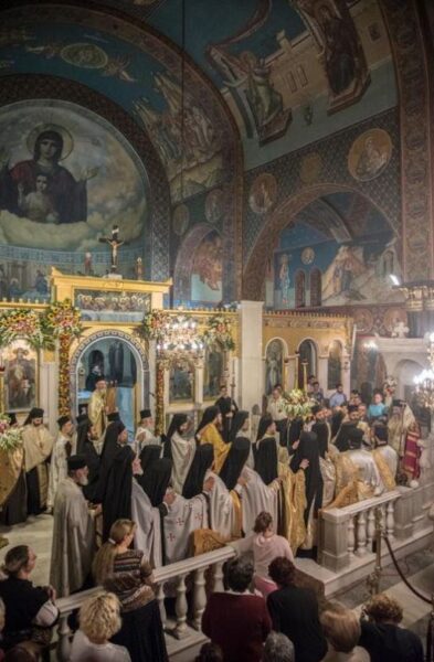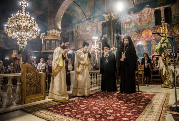 Με τη δέουσα λαμπρότητα τελέσθηκε το Σάββατο 5 Οκτωβρίου 2019 ο Μέγας Πανηγυρικός Πολυαρχιερατικός Εσπερινός, χοροστατούντος του Σεβασμιωτάτου Μητροπολίτου Μάνης κ. Χρυσοστόμου και συγχοροστατούντων των Σεβασμιωτάτων Μητροπολιτών Σάμου, Ικαρίας και Κορσεών κ. Ευσεβίου και του οικείου Ποιμενάρχου Νέας Ιωνίας και Φιλαδελφείας κ. Γαβριήλ και τη συμμετοχή πολλών κληρικών.