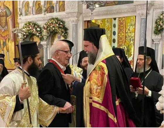 Επίσης, στον Πανηγυρικό Εσπερινό, στις 30 Ιουνίου, ο Σεβασμιώτατος τίμησε με το παράσημο του Πολιούχου της Ιεράς Μητροπόλεως, Ιερομάρτυρος Αγίου Γεωργίου του Νεαπολίτου, τον κ. Χάρη Σαπουντζάκη, πρ. Πρόεδρο της Ενώσεως Σπάρτης Μικράς Ασίας.