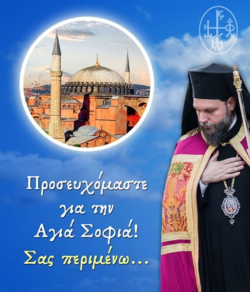 Ιερά Αγρυπνία θα πραγματοποιηθεί στη Νέα Ιωνία για την Αγία Σοφία την παρασκευή 24 Ιουλίου, ημέρα που είναι προγραμματισμένη από την Τουρκική Κυβέρνηση η επίσημη μετατροπή της Αγιάς Σοφιάς σε τζαμί.