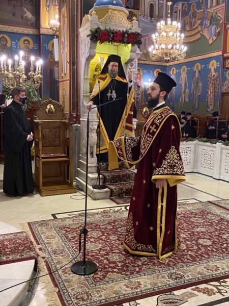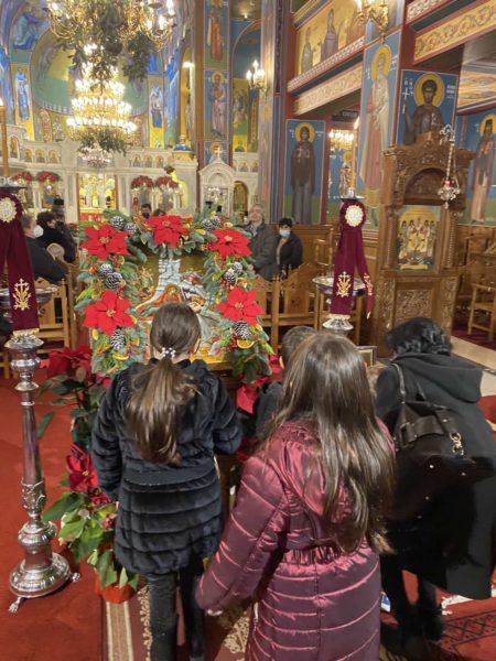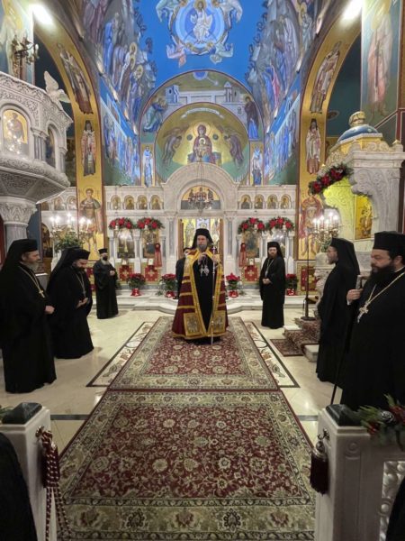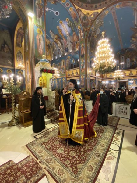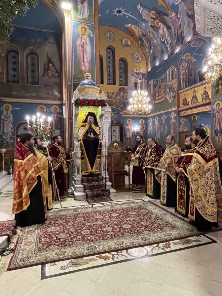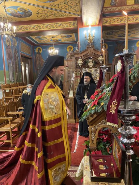 Προ του τέλος της Ακολουθίας, ο Σεβασμιώτατος ευχήθηκε σε όλους καλά και ευλογημένα Χριστούγεννα με τη χάρη και την ευλογία του Σαρκωθέντος Χριστού.