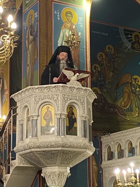 Το Θείο Λόγο κήρυξε ο Πανοσ. Αρχιμ. Βασίλειος Παλιούρας, Ηγούμενος της Ιεράς Μονής Παναχράντου, ο οποίος αναφέρθηκε στη σημασία και στο βαθύτερο νόημα της Γεννήσεως τους Σωτήρος Χριστού για τον άνθρωπο.