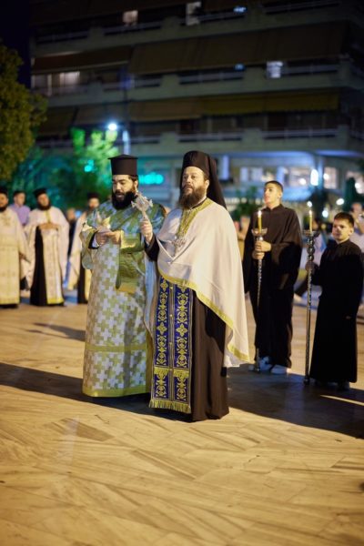 Στη συνέχεια πραγματοποιήθηκε μεγαλοπρεπής λιτάνευση της Ιεράς Εικόνος της Θεομήτορος και του Τιμίου Ξύλου στους δρόμους της Νέας Φιλαδέλφειας, υπό τους ήχους της Φιλαρμονικής του Πυροσβεστικού Σώματος, παρουσία του Δημάρχου Ν. Φιλαδέλφειας-Ν. Χαλκηδόνας κ. Ιωάννη Τομπούλογλου, αντιδημάρχων, μελών του Δημοτικού και των Κοινοτικών Συμβουλίων του Δήμου, εκπροσώπωνπροσφυγικώνσωματείων, φορέων της πόλεως και πλήθους ευσεβούς λαού.