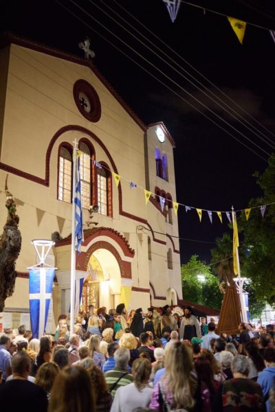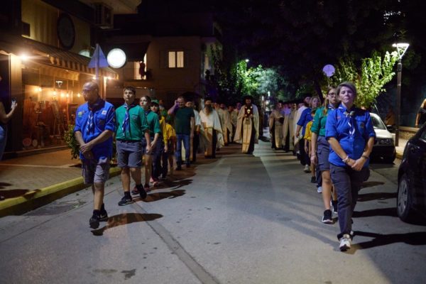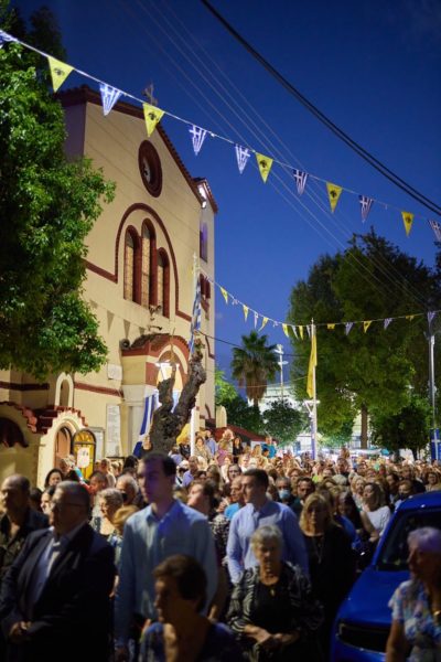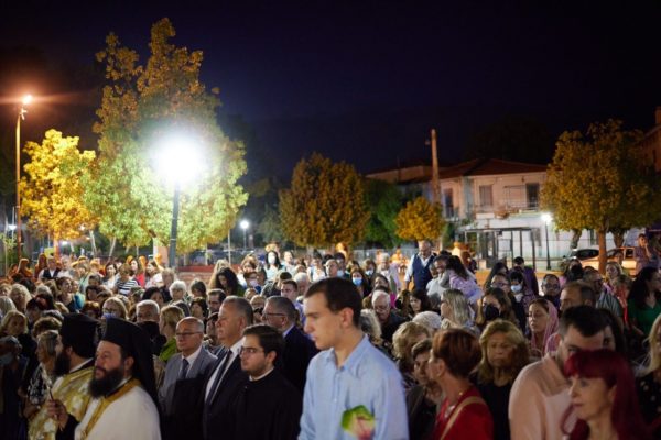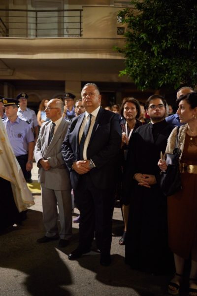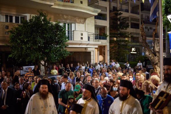 Στη συνέχεια πραγματοποιήθηκε μεγαλοπρεπής λιτάνευση της Ιεράς Εικόνος της Θεομήτορος και του Τιμίου Ξύλου στους δρόμους της Νέας Φιλαδέλφειας, υπό τους ήχους της Φιλαρμονικής του Πυροσβεστικού Σώματος, παρουσία του Δημάρχου Ν. Φιλαδέλφειας-Ν. Χαλκηδόνας κ. Ιωάννη Τομπούλογλου, αντιδημάρχων, μελών του Δημοτικού και των Κοινοτικών Συμβουλίων του Δήμου, εκπροσώπωνπροσφυγικώνσωματείων, φορέων της πόλεως και πλήθους ευσεβούς λαού.