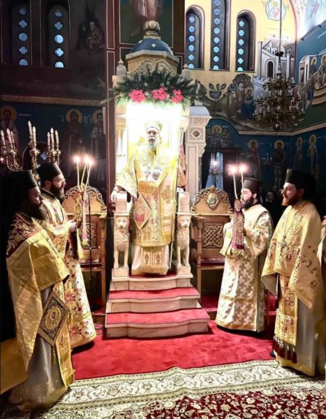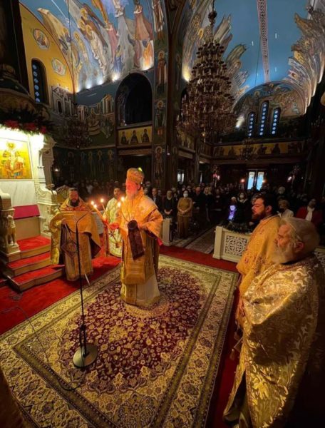 Μετά το πέρας της Ιεράς Αγρυπνίας ο Σεβασμιώτατος χοροστάτησε στην Πανηγυρική Δοξολογία επί τη ενάρξει του νέου έτους και στη συνέχεια ευλόγησε την Πρωτοχρονιάτικη Βασιλόπιτα, ευχόμενος προς όλους καλή και ευλογημένη νέα χρονιά!