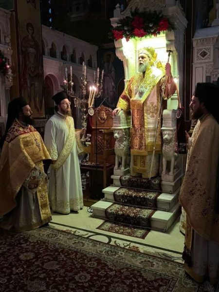 Μετά το πέρας της Ιεράς Αγρύπνιας ο Σεβασμιώτατος ευλόγησε την Αγιοβασιλόπιττα, που στη συνέχεια μοίρασε στο πολυπληθές εκκλησίασμα, ευχόμενος η Νέα Χρονιά να είναι γεμάτη από αγάπη, ειρήνη, υγεία και θεία ευλογία για όλον τον κόσμο.