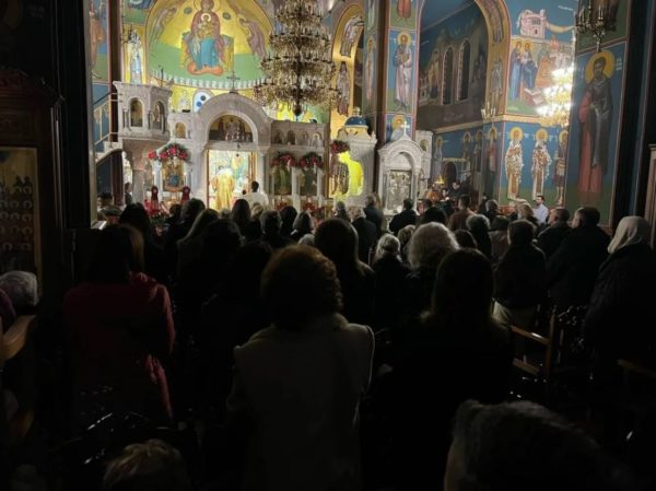 Πλήθος πιστών από πολλά μέρη του λεκανοπεδίου ανταποκρίθηκαν πρόθυμα στο κάλεσμα του Σεβασμιωτάτου Μητροπολίτου κ. Γαβριήλ να υποδεχθούν μαζί το Νέο Έτος και προσήλθαν με ευλάβεια στον Μητροπολιτικό Ναό της Νέας Ιωνίας για να συμμετάσχουν στην Ιερά Αγρυπνία και να προσκυνήσουν τόσο την Ιερά Εικόνα, όσο και την Τιμία άφθαρτη Χείρα του Μεγάλου Βασιλείου, που τέθηκε σε προσκύνηση.
