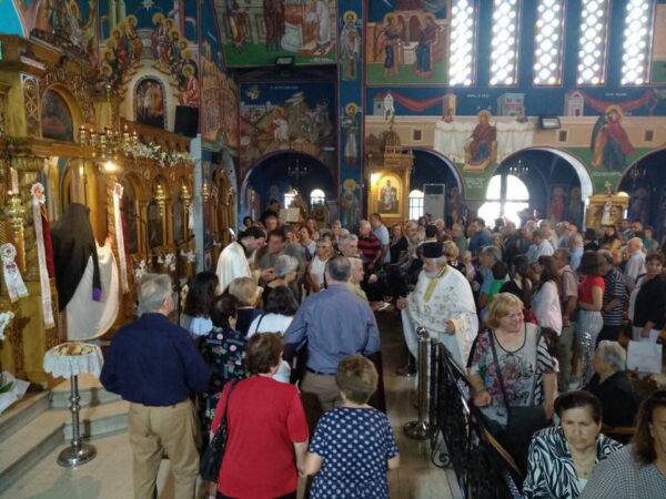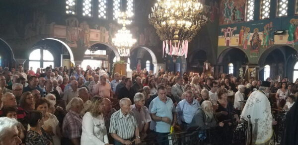 Πλήθος πιστών προσήλθε ευλαβικά στον πανηγυρίζοντα Ναό, ανάμεσά τους πρόεδροι και εκπρόσωποι Μικρασιατικών συλλόγων και τοπικών πολιτιστικών σωματείων για να προσκυνήσουν την Ιερά Εικόνα και το απότμημα του Ιερού Λειψάνου της Αγίας που φυλάσσεται στο Ναό.