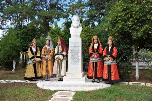 Ακολούθως, πραγματοποιήθηκε κατάθεση στεφάνων, ενώπιον του ανδριάντα του μακαριστού Μητροπολίτου Πατάρων Μελετίου στον περίβολο του Ιερού Ναού, όπου τηρήθηκε ενός λεπτού σιγή και εψάλη ο Εθνικός Ύμνος.