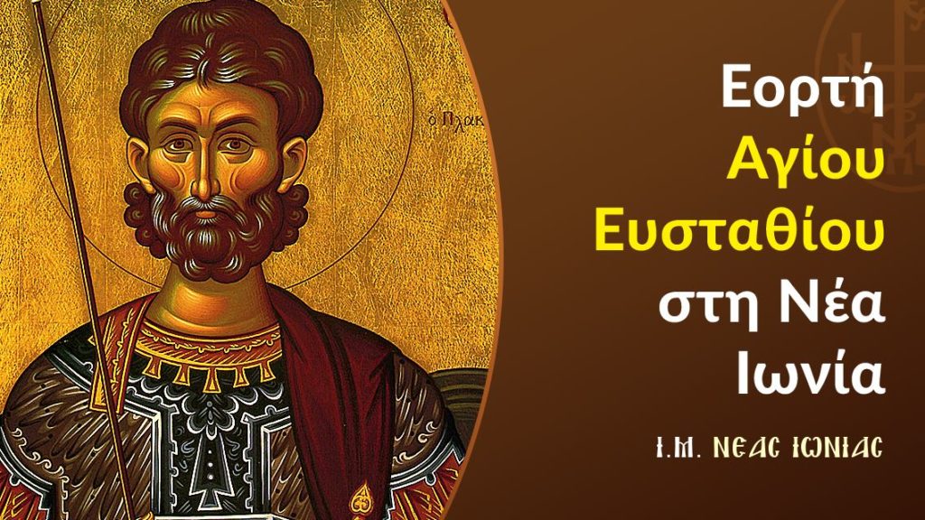 Με την ευκαιρία της εορτής της Αγίου ενδόξου Μεγαλομάρτυρος Ευσταθίου και της συνοδείας αυτού πανηγυρίζει ο φερώνυμος Ιερός Ναός στη Νέα Ιωνία, στον οποίο φυλάσσεται τεμάχιο εκ του Ιερού Λειψάνου του Αγίου.