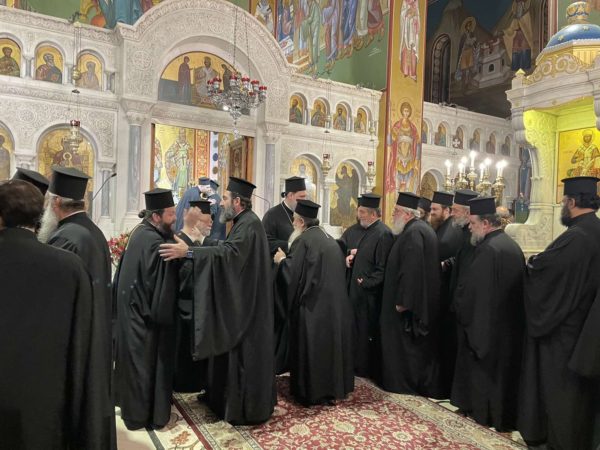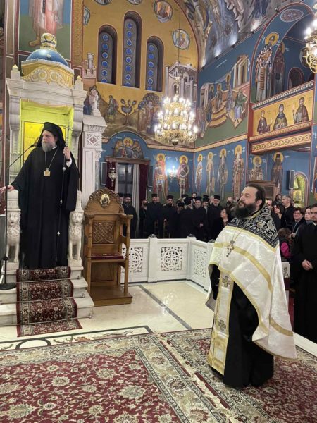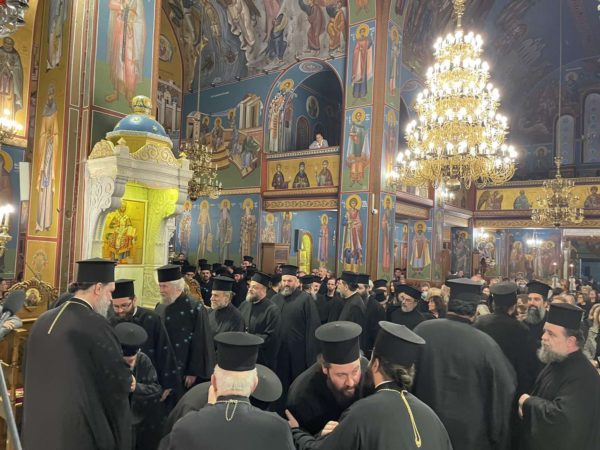 Στο τέλος της Ακολουθίας ιερείς και λαϊκοί αντάλλαξαν τον ασπασμό της αγάπης και της συγχωρήσεως, λαμβάνοντας την ευλογία του Σεβασμιωτάτου.