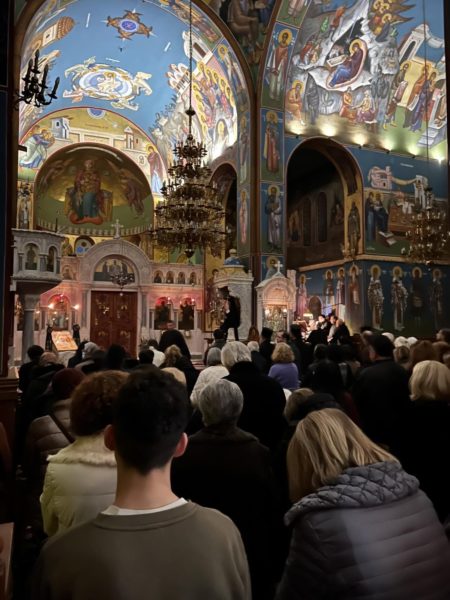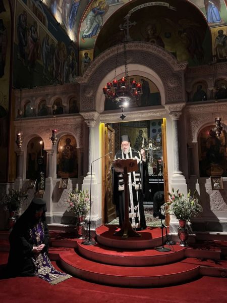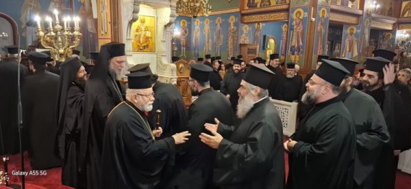 Στο τέλος της Ακολουθίας ιερείς και λαϊκοί αντάλλαξαν τον ασπασμό της αγάπης και της συγχωρήσεως, λαμβάνοντας την ευλογία του Σεβασμιωτάτου.