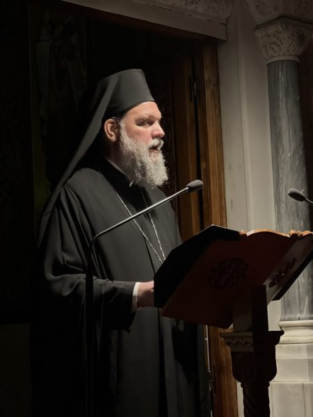 Κατά την διάρκεια του Κατανυκτικού Εσπερινού ο Μητροπολίτης κ. Γαβριήλ ανέπτυξε ομιλία με θέμα: «Η αρετή της ειρήνης κατά την βιβλική και πατερική παράδοση», κατά την οποία αναφέρθηκε στη βιβλική διδασκαλία περί ειρήνης, επισημαίνοντας τη σημασία της ως θείου δώρου και ως καρπού της σχέσης του ανθρώπου με τον Θεό.