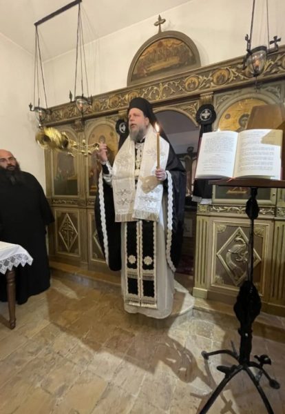 Μετά το πέρας της Προηγιασμένης Θείας Λειτουργίας ο Σεβασμιώτατος τέλεσε το μυστήριο του Ιερού Ευχελαίου στον προαύλιο χώρο του Νοσοκομείου, με τη συμμετοχή κληρικών της Ιεράς Μητρόπολης, παρουσία των ιατρών και των νοσηλευτών του Νοσοκομείου.