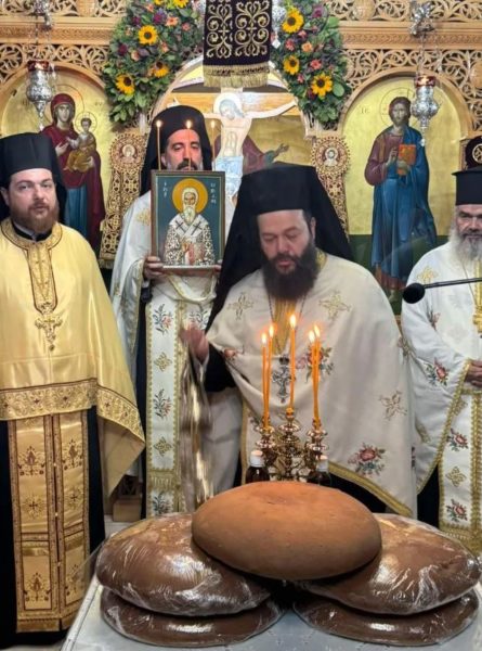 Τον θείο λόγο κήρυξε ο Μητροπολίτης Νέας Ιωνίας και Φιλαδελφείας κ. Γαβριήλ, ο οποίος, αφού αρχικά καλωσόρισε με θερμά λόγια τον συγχοροστατούντα Επίσκοπο Άσσου κ. Τιμόθεο, εξαίροντας το πλούσιο και πολυσχιδές ιεραποστολικό του έργο στην Ιερά Μητρόπολη Μεξικού, στη συνέχεια αναφέρθηκε εκτενώς στο μαρτυρικό βίο των δύο Αγίων του Χριστού Κυπριανού και Ιουστίνης, τονίζοντας τη θερμή και ακατάβλητη πίστη τους στον Θεό.