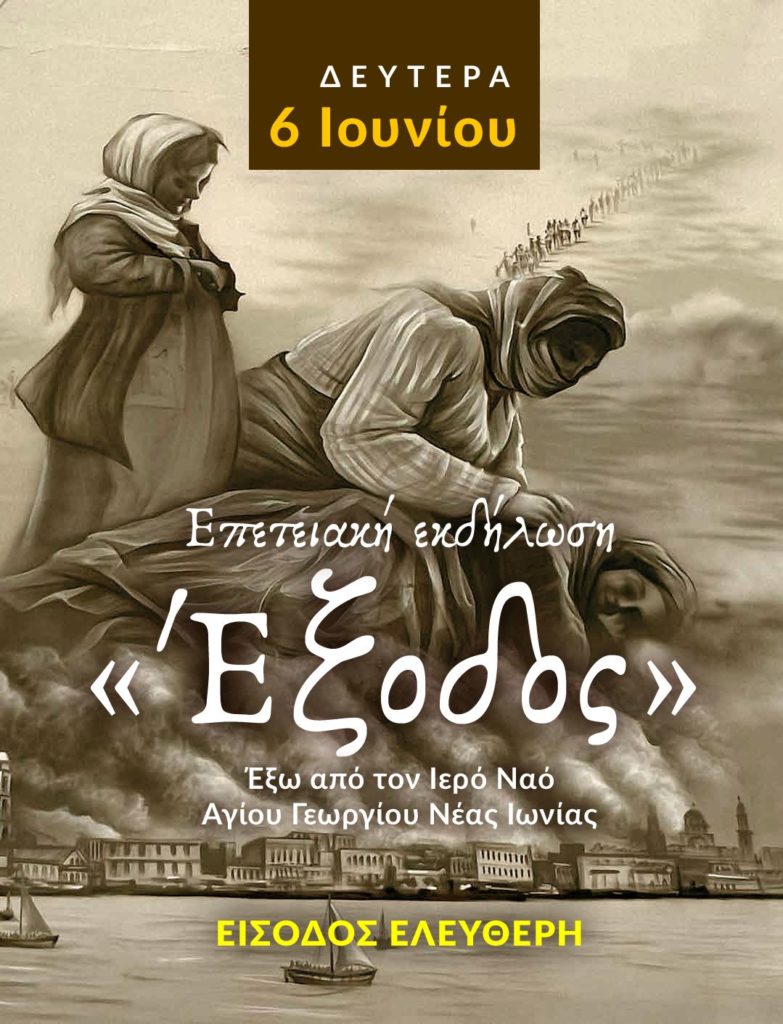 Οι νέοι της Ιεράς Μητρόπολης Νέας Ιωνίας, Φιλαδελφείας, Ηρακλείου και Χαλκηδόνος τιμούν τα 100 χρόνια του Μικρασιατικού Ελληνισμού με την παρουσίαση ενός επετειακού πολυθεάματος με τίτλο: «Έξοδος», αφιερωμένο στις ημέρες του 1922 στη Σμύρνη.
