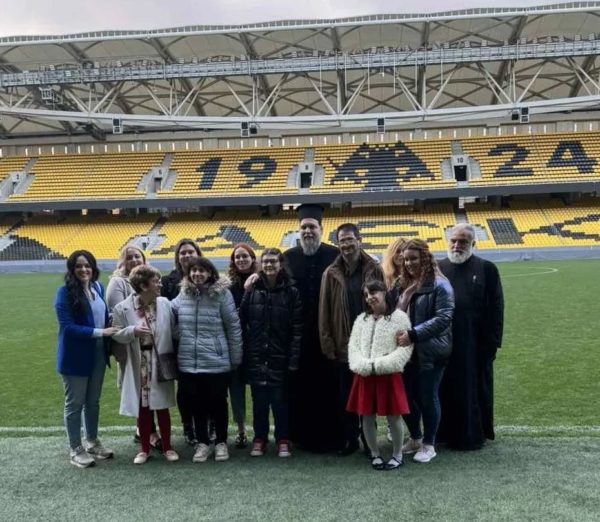 Στη συνέχεια, ο Σεβασμιώτατος με τους ωφελουμένους μετέβησαν στο γήπεδο της ΑΕΚ στη Νέα Φιλαδέλφεια, όπου πραγματοποίησαν επίσκεψη στον στο νέο σύγχρονο Μουσείο Προσφυγικού Ελληνισμού, στα αποδυτήρια και στον αγωνιστικό χώρο του γηπέδου.