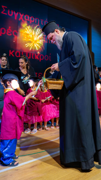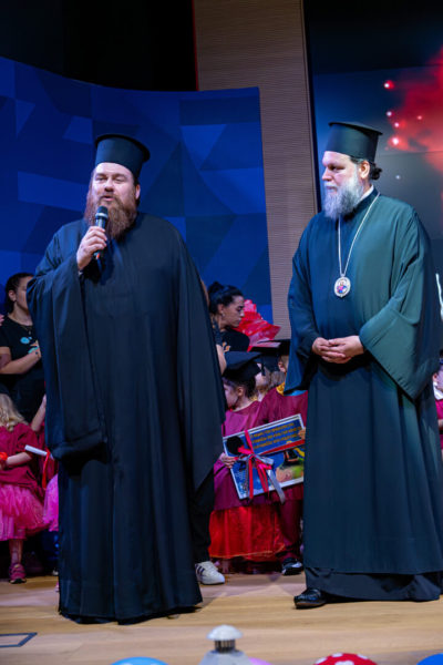 Την εορτή προλόγισε ο Διευθυντής των τριών Παιδικών Σταθμών της Ιεράς Μητροπόλεως Πανοσιολ. Αρχιμανδρίτης Ηλίας Καρατζάς, ο οποίος αναφέρθηκε στο υπεύθυνο και συνάμα απαιτητικό έργο των μονάδων εκπαίδευσης της Ιεράς Μητροπόλεως, οι οποίες, με το εξειδικευμένο εκπαιδευτικό προσωπικό, στηρίζουν πολλά χρόνια την ελληνική οικογένεια, συμβάλλοντας καθοριστικά τόσο στην ανάπτυξη του συναισθηματικού κόσμου των παιδιών, όσο και στην την ανάδειξη των πρώιμων δεξιοτήτων τους, μέσα σε ένα σχολικό πλαίσιο γεμάτο από αγάπη, συνέπεια και σεβασμό στις αξίες της παράδοσης και της μόρφωσης.