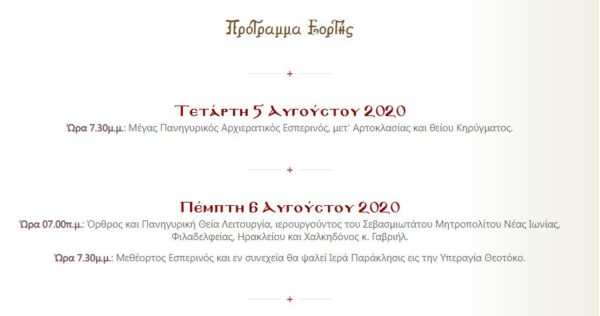 Πανηγυρίζει η Μεταμόρφωση του Σωτήρος στη Ν. Ιωνία