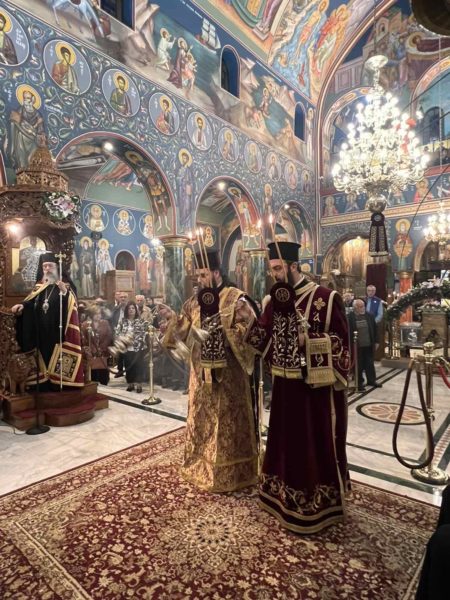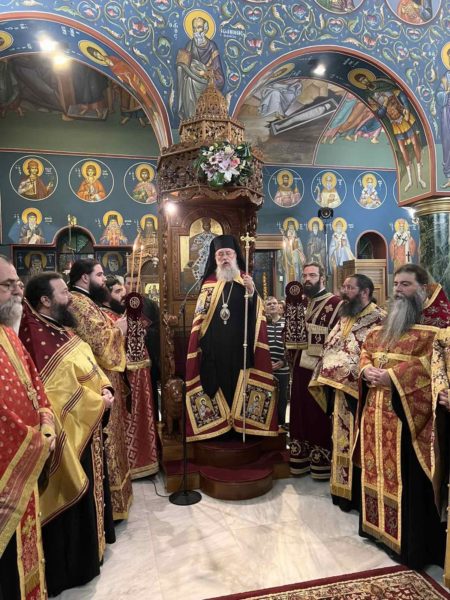 Με την δέουσα λαμπρότητα τελέσθηκε το Σάββατο 2 Νοεμβρίου 2024 ο Μέγας Πανηγυρικός Πολυαρχιερατικός Εσπερινός, χοροστατούντος του Σεβασμιωτάτου Μητροπολίτου Κηφισίας, Αμαρουσίου, Ωρωπού και Μαραθώνος κ. Κυρίλλου και συγχοροστατούντων των Σεβασμιωτάτων Μητροπολιτών Πατρών κ. Χρυσοστόμου και του οικείου Ποιμενάρχου Νέας Ιωνίας, Φιλαδελφείας, Ηρακλείου και Χαλκηδόνος κ. Γαβριήλ και με τη συμμετοχή πλειάδας κληρικών, ενώ εντός του Ιερού Βήματος παρέστη συμπροσευχόμενος ο Σεβασμιώτατος Μητροπολίτης Ανέων κ. Μακάριος.