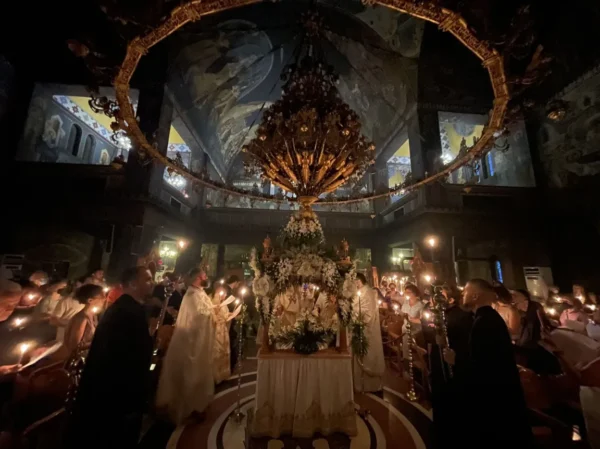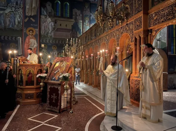 Με ιδιαίτερη κατάνυξη τελέσθηκε το βράδυ της Παρασκευής στον Ιερό Ναό Ζωοδόχου Πηγής Καλογραίζας προεόρτια Ιερά Αγρυπνία ενόψει την μεγάλης Θεομητορικής εορτής της Κοιμήσεως της Υπεραγίας Θεοτόκου, προεξάρχοντος του Σεβασμιωτάτου Μητροπολίτου Ν. Ιωνίας, Φιλαδελφείας, Ηρακλείου και Χαλκηδόνος κ. Γαβριήλ.