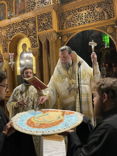 Προ του τέλους της Θείας Λειτουργίας ο Σεβασμιώτατος αναφέρθηκε στην επικείμενη εορτή της Παναγίας μας, όπου σε κάθε γωνιά της πατρίδας μας ο λαός μας προστρέχει με την ψυχή γεμάτη ελπίδα για να μαρτυρήσει την πίστη του και να καταθέσει την ευλάβειά του στο πρόσωπο της Μητέρας του Κυρίου μας.