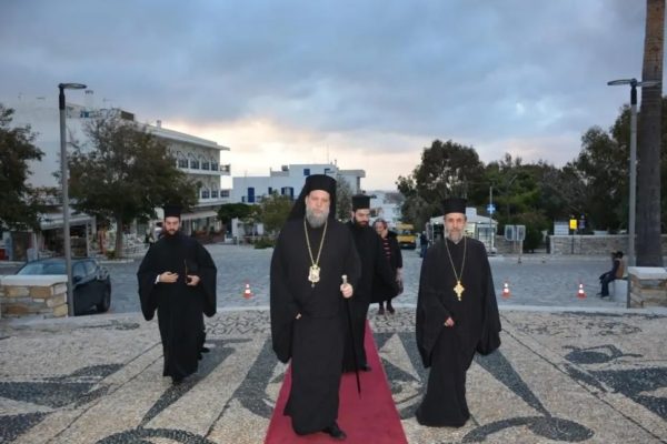 Κατά την επίσκεψή τους στο νησί ο ιερός κλήρος της Ιεράς Μητρόπολης και οι ευλαβείς προσκυνητές είχαν την ευλογία να επισκεφθούν τον Πανίερο Ναό της Ευαγγελιστρίας και να προσκυνήσουν την θαυματουργό εικόνα της Μεγαλόχαρης, όπου ο Σεβασμιώτατος χοροστάτησε το Σάββατο 15 Οκτωβρίου στον Αρχιερατικό Εσπερινό.