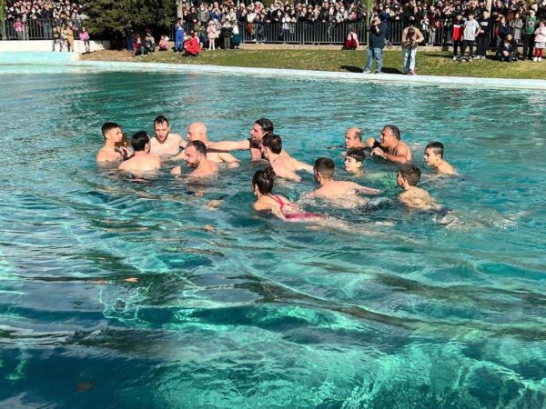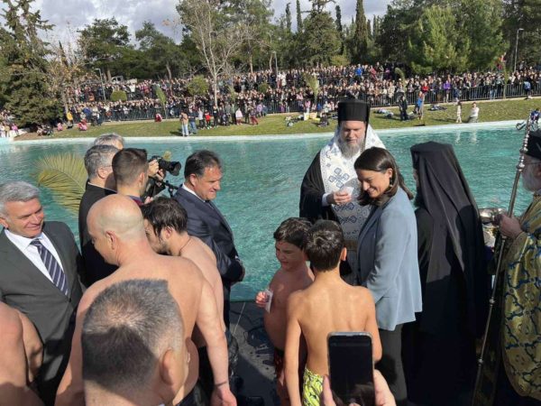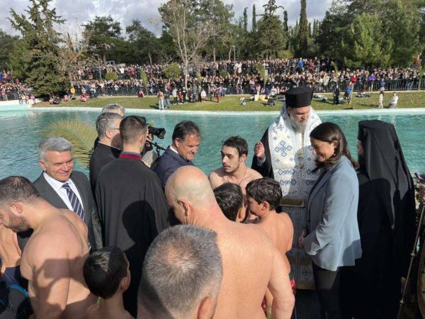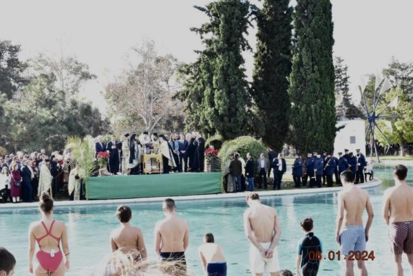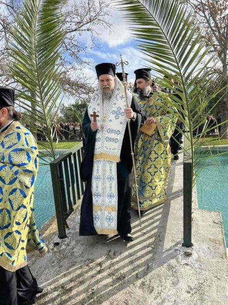 Ακολούθως, ο Σεβασμιώτατος μετέβη στην γραφική λίμνη του άλσους της Νέας Φιλαδέλφειας, όπου τέλεσε την ακολουθία του Καθαγιασμού των Υδάτων με την κατάδυση του Τιμίου Σταυρού, παρουσία κληρικών της Ιεράς Μητροπόλεως.