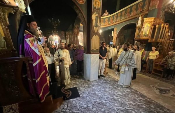 Τον θείο λόγο κήρυξε ο Σεβασμιώτατος, ο οποίος αναφέρθηκε στο πανσεβάσμιο πρόσωπο της Μητέρας του Θεού, επισημαίνοντας την προσφορά Της στο σχέδιο της Θείας Οικονομίας.