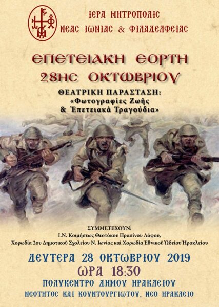Η Ιερά Μητρόπολη Νέας Ιωνίας και Φιλαδελφείας τιμά την επέτειο της 28ης Οκτωβρίου 1940 με μία επετειακή και εορταστική εκδήλωση.