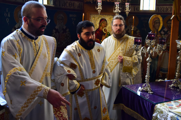 Κατά την διάρκεια της Θείας Λειτουργίας ο Σεβασμιώτατος τέλεσε την εις Διάκονον χειροτονία του ευλαβεστάτου εγγάμου νέου κ. Ιωάννου Καλογήρου, φοιτητή της Θεολογικής Σχολής του ΕΚΠΑ.