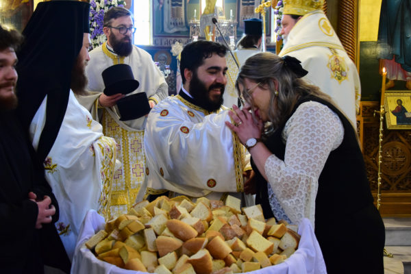 Μετά το πέρας της Θείας Λειτουργίας, ο π. Ιωάννης, με προτροπή του Σεβασμιωτάτου, μοίρασε το αντίδωρο και δέχθηκε τις ευχές του εκκλησιάσματος.
