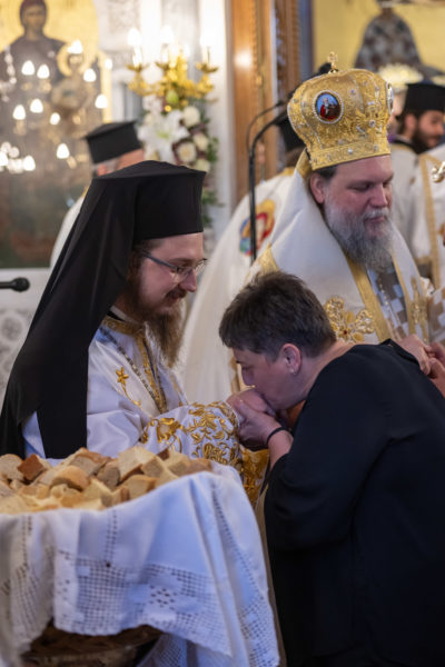 Μετά το πέρας της Θείας Λειτουργίας ο Σεβασμιώτατος Μητροπολίτης κ. Γαβριήλ χειροθέτησε σε Αρχιμανδρίτη τον π. Στέφανο, ο οποίος στη συνέχεια, κατόπιν παρότρυνσης του Σεβασμιώτατου, μοίρασε το αντίδωρο και δέχθηκε τις ευχές του εκκλησιάσματος.