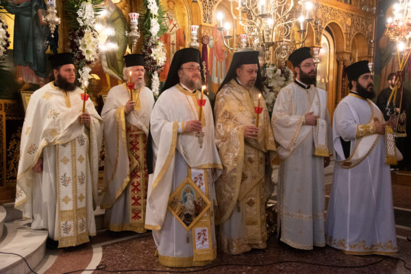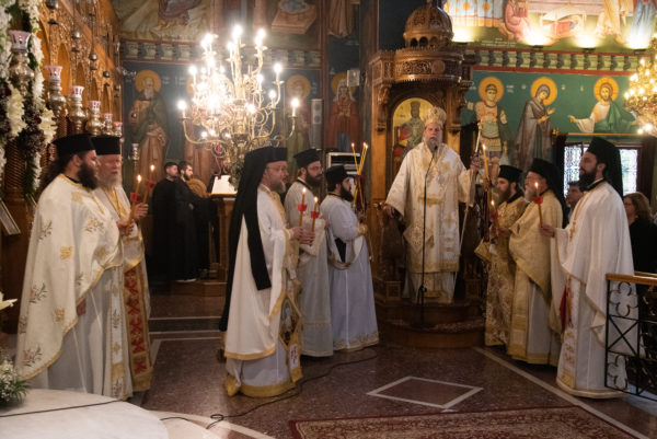 Του Όρθρου και της Πανηγυρικής Θείας Λειτουργίας προεξήρχε ο Σεβασμιώτατος Μητροπολίτης Νέας Ιωνίας, Φιλαδελφείας, Ηρακλείου και Χαλκηδόνος κ. Γαβριήλ, με τη συμμετοχή κληρικών τόσο της τοπικής Εκκλησίας της Ν. Ιωνίας, όσο και άλλων Ιερών Μητροπόλεων, ενώ εντός του Ιερού Βήματος παρέστη συμπροσευχόμενος ο Σεβασμιωτάτος Μητροπολίτης Ανέων κ. Μακάριος.