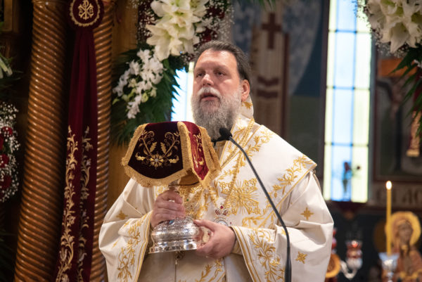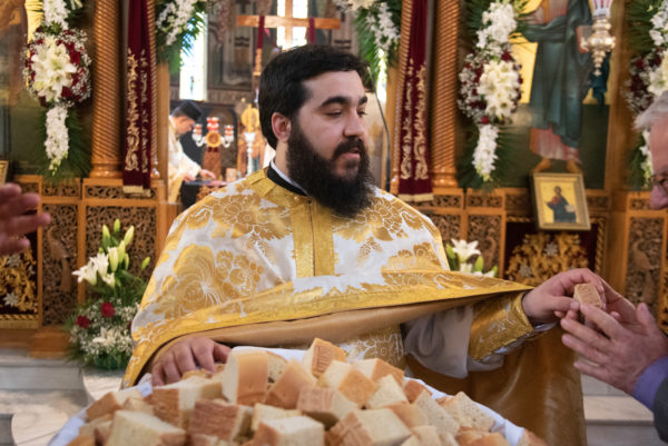 Μετά το πέρας της Θείας Λειτουργίας ο π. Ιωάννης, κατόπιν παροτρύνσεως του Σεβασμιώτατου, μοίρασε το αντίδωρο και δέχθηκε τις ευχές του εκκλησιάσματος.