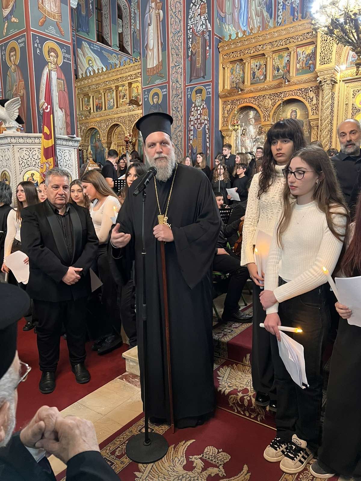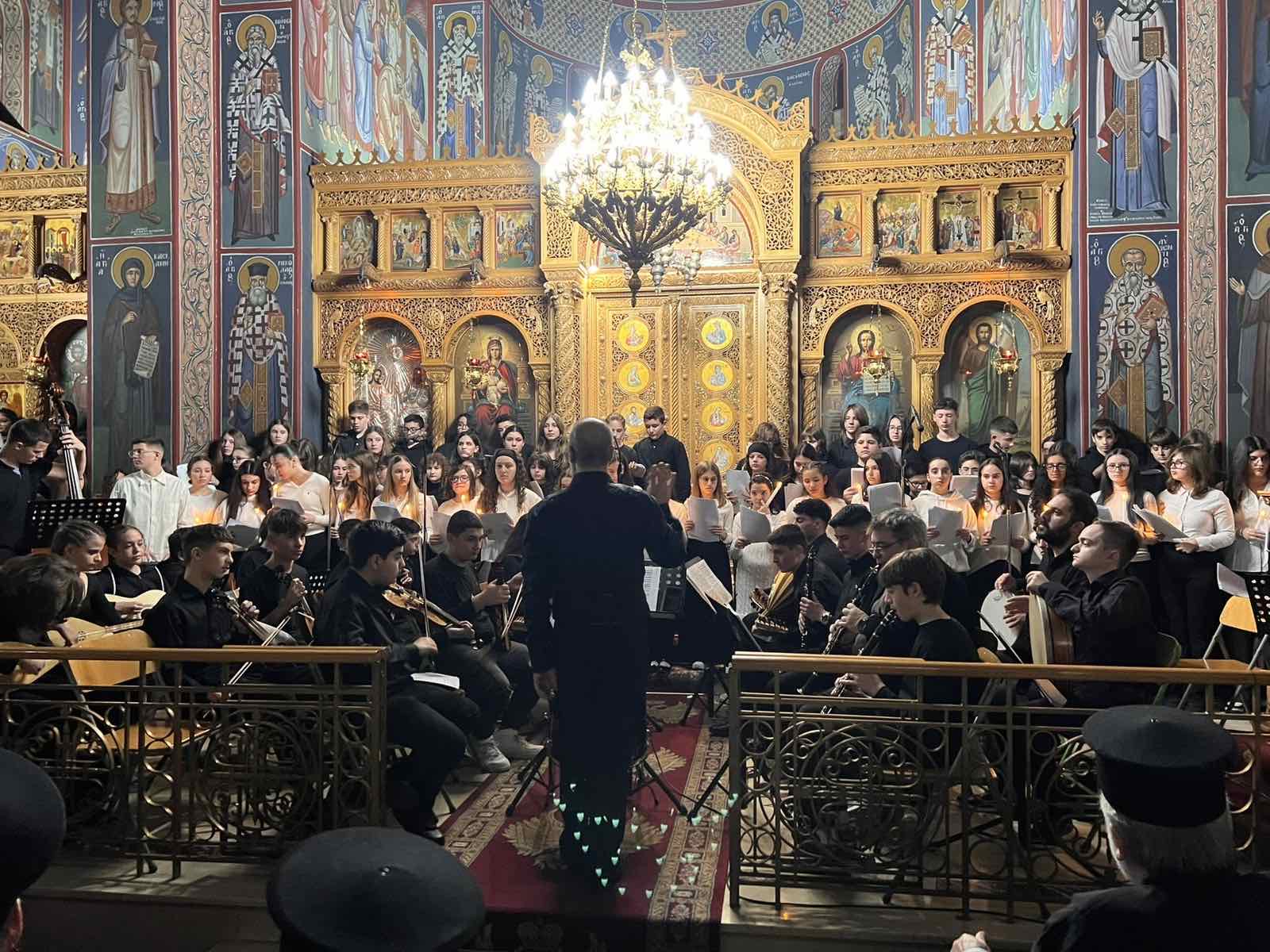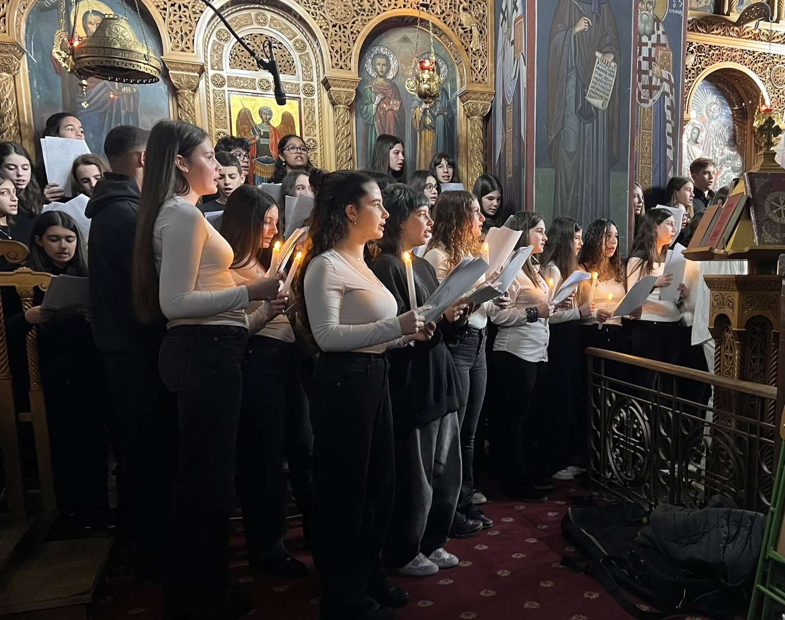 Στη συνέχεια, μεγάλος αριθμός μαθητών των μουσικών και χορωδιακών συνόλων Ελληνικής, Βυζαντινής και Ανατολικής Μουσικής, καθώς και Ρωμιών Συνθετών της Πόλης του Μουσικού Σχολείου Ιλίου, απέδωσε με ενάργεια εκκλησιαστικούς ύμνους του Αγίου Δωδεκαημέρου και ερμήνευσε θαυμάσια χριστουγεννιάτικα κάλαντα, παινέματα, παραδοσιακά τραγούδια και σκοπούς από κάθε γωνιά της πατρίδας μας, δημιουργώντας κλίμα πνευματικής χαράς, εισάγοντας τους παρισταμένους στο βαθύτερο νόημα της εορτής της Γεννήσεως του Χριστού.