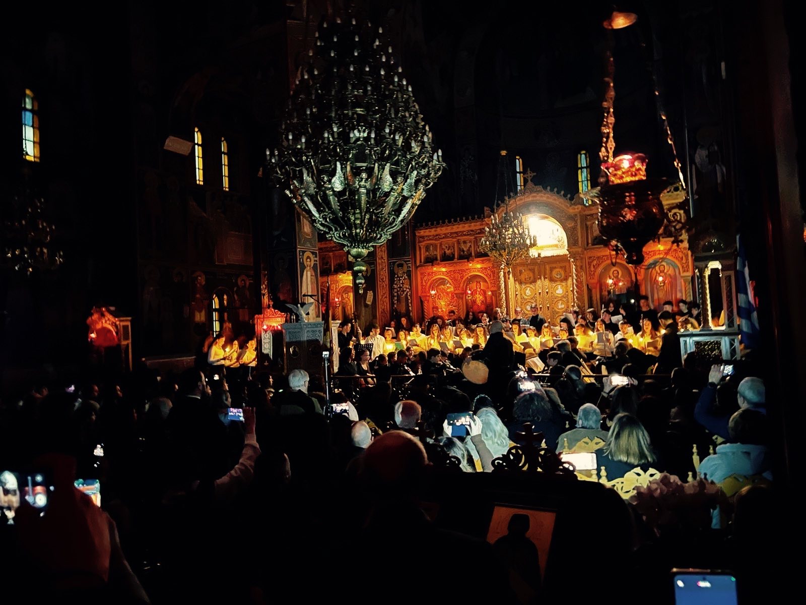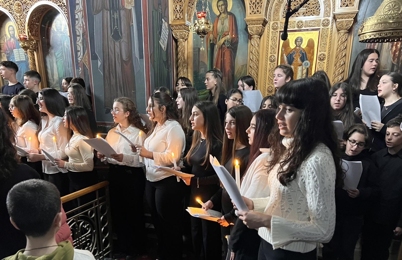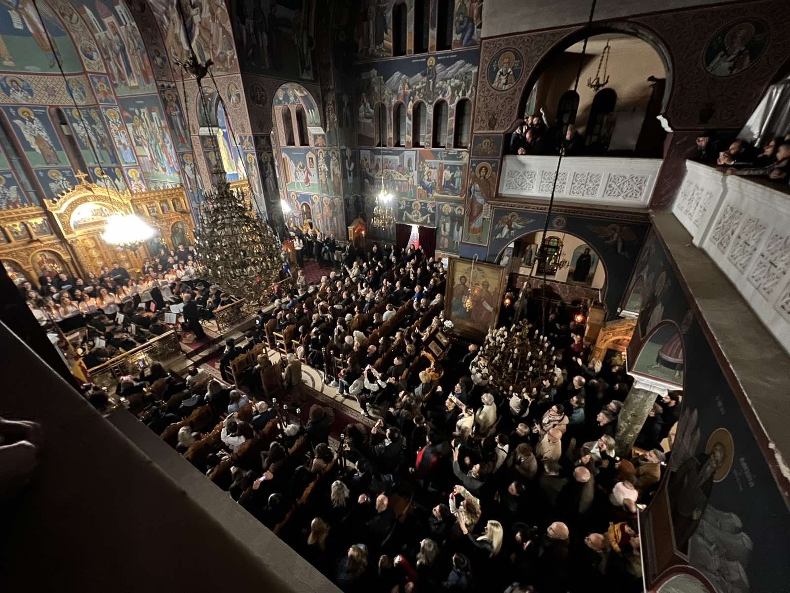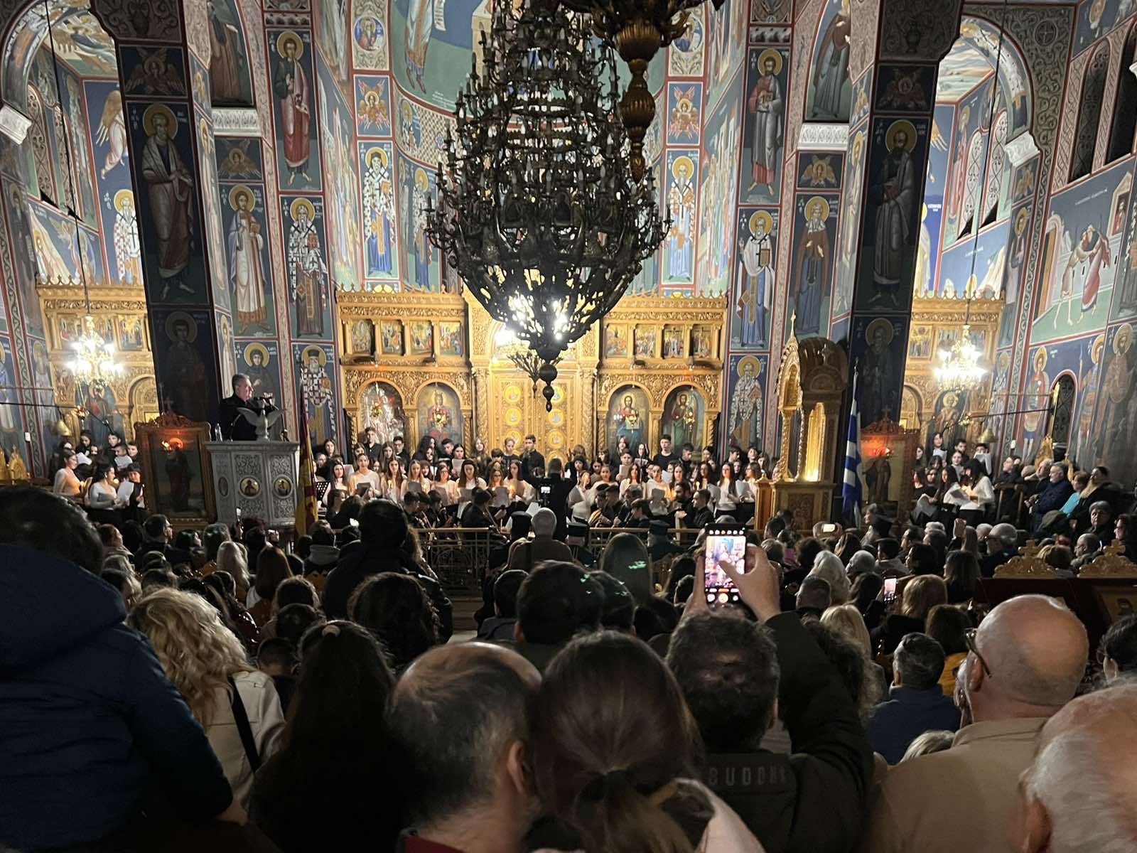 Στη συνέχεια, μεγάλος αριθμός μαθητών των μουσικών και χορωδιακών συνόλων Ελληνικής, Βυζαντινής και Ανατολικής Μουσικής, καθώς και Ρωμιών Συνθετών της Πόλης του Μουσικού Σχολείου Ιλίου, απέδωσε με ενάργεια εκκλησιαστικούς ύμνους του Αγίου Δωδεκαημέρου και ερμήνευσε θαυμάσια χριστουγεννιάτικα κάλαντα, παινέματα, παραδοσιακά τραγούδια και σκοπούς από κάθε γωνιά της πατρίδας μας, δημιουργώντας κλίμα πνευματικής χαράς, εισάγοντας τους παρισταμένους στο βαθύτερο νόημα της εορτής της Γεννήσεως του Χριστού.