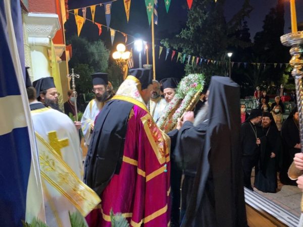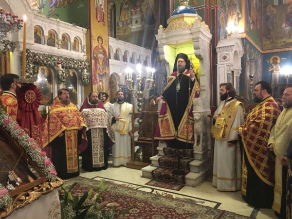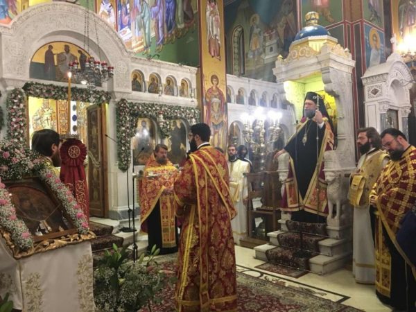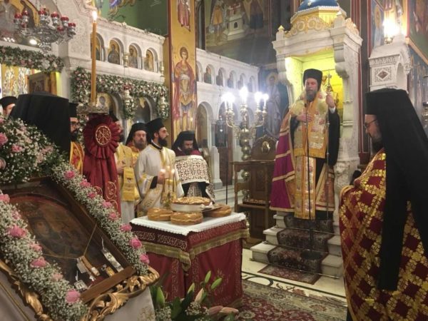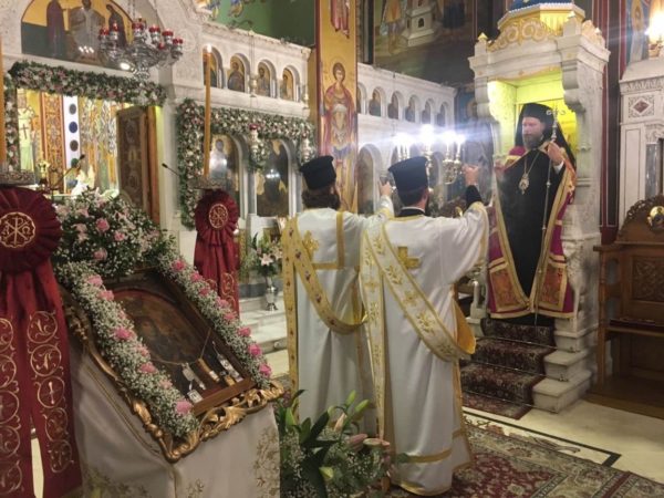Νωρίτερα, στο πλαίσιο εορτασμού του Μητροπολιτικού Ναού, ο Σεβασμιώτατος, παρουσία του ιερού κλήρου και ευλαβών χριστιανών υποδέχθηκε την Ιερά θαυματουργό Εικόνα της Παναγίας Ρόδον το Αμάραντον εκ Μικράς Ασίας.